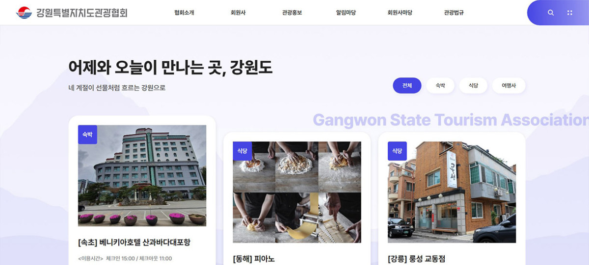 강원특별자치도관광협회는 도내 관광 자원과 지역 콘텐츠를 연계해 강원도의 관광 경쟁력을 높이고, 관광 산업 전반을 지원하는 기관입니다.