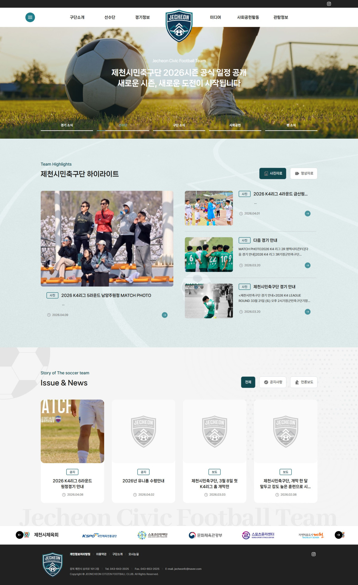 또한 그린 계열 컬러를 중심으로 팀 아이덴티티를 강화하였으며, 경기 일정, 결과, 공지사항 등