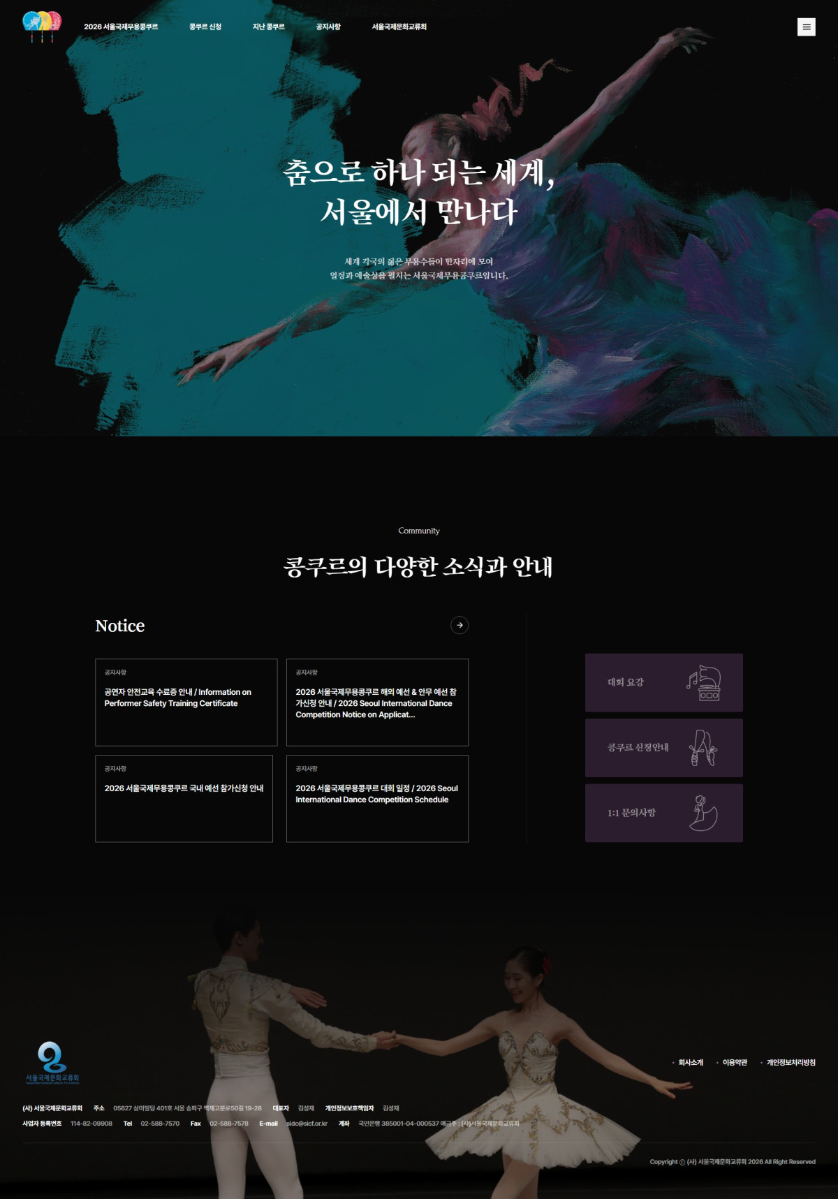 메인 비주얼에는 역동적인 무용 이미지를 활용해 공연 예술의 아름다움과 몰입감을 직관적으로