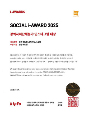 소셜아이어워드 인스타그램 대상 (충청북도청)