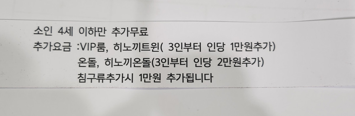 주중/주말/성수기로 나누어 요금표 변경 요청드립니다.