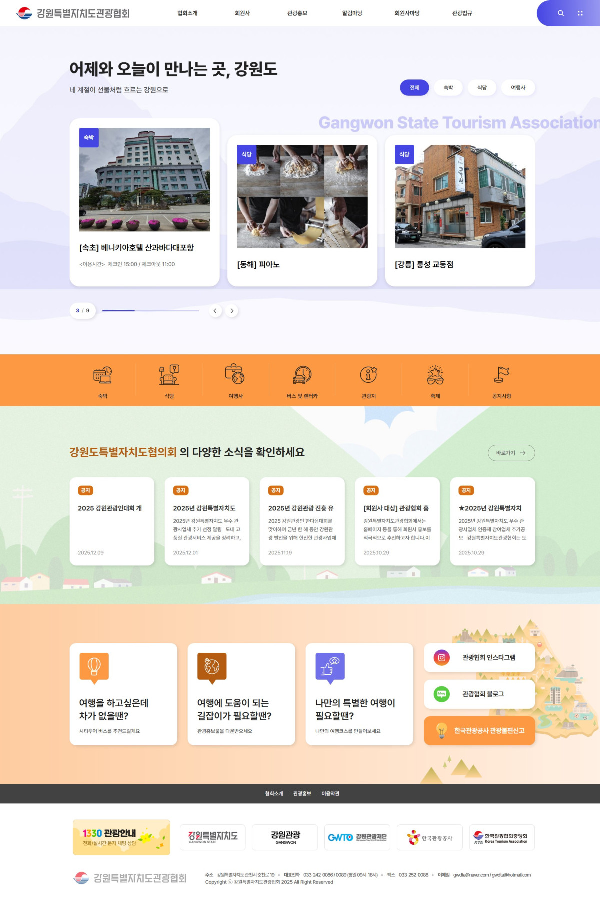 강원특별자치도관광협회는 도내 관광 자원과 지역 콘텐츠를 연계해 강원도의 관광 경쟁력을 높이고, 관광 산업 전반을 지원하는 기관입니다.