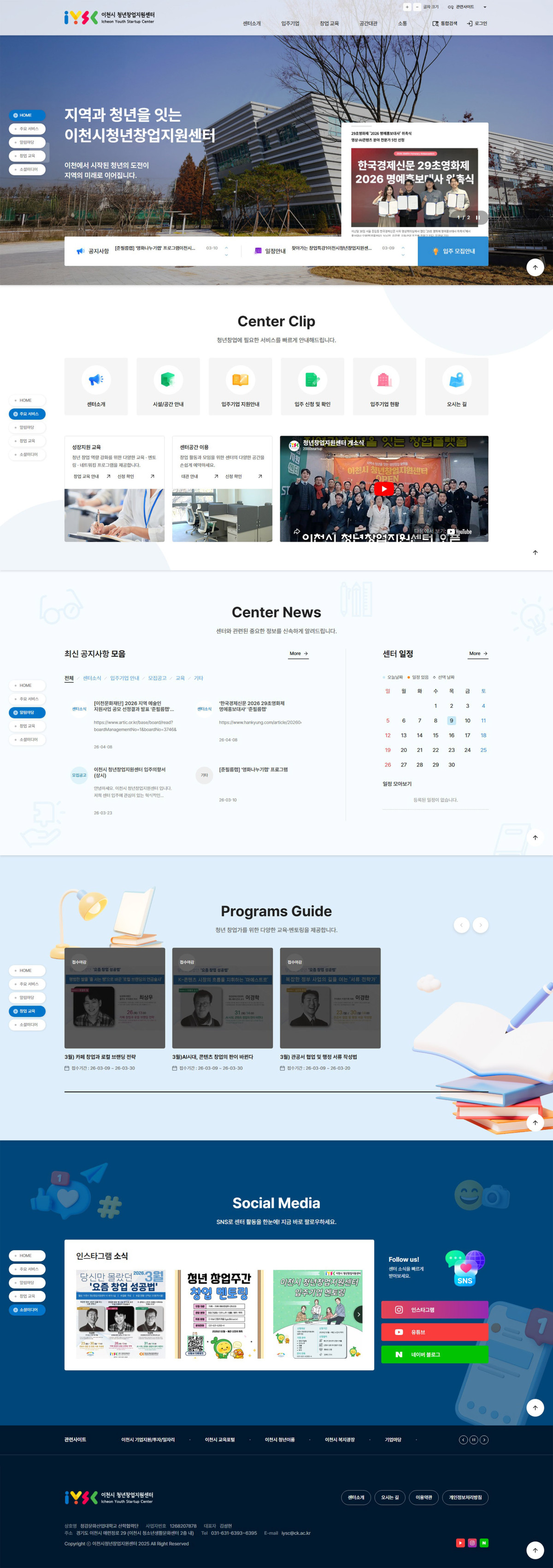 메인 비주얼에는 센터 전경 이미지를 활용해 신뢰감을 전달하고,
